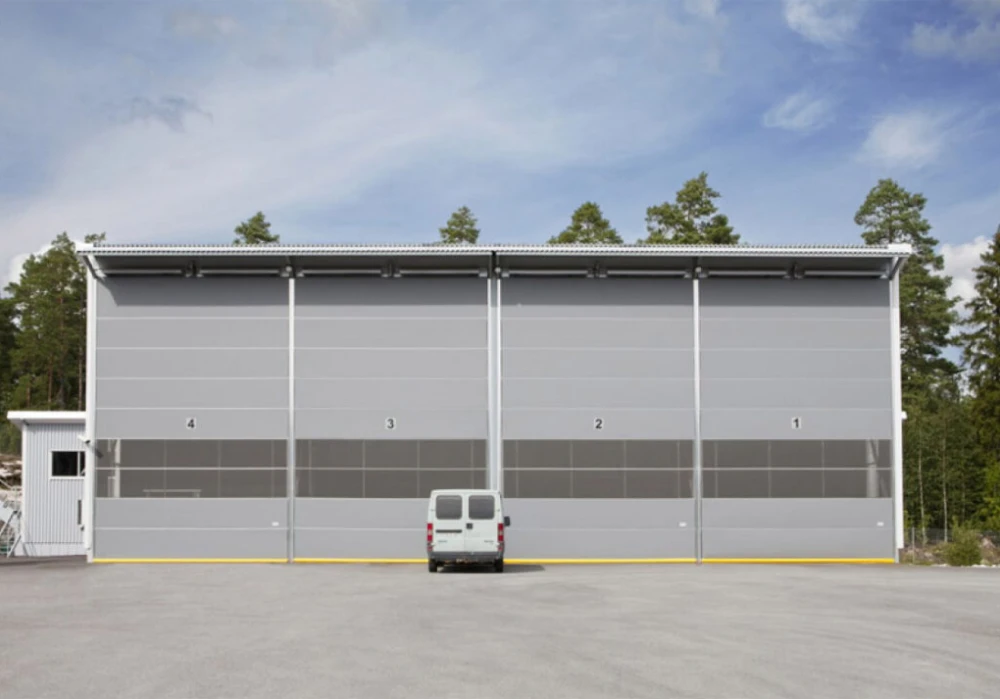 Perfect for warehouses, machine sheds, and chip storage, this door is ideal for spaces requiring mobility and space efficiency, while also serving as a partition in production rooms.